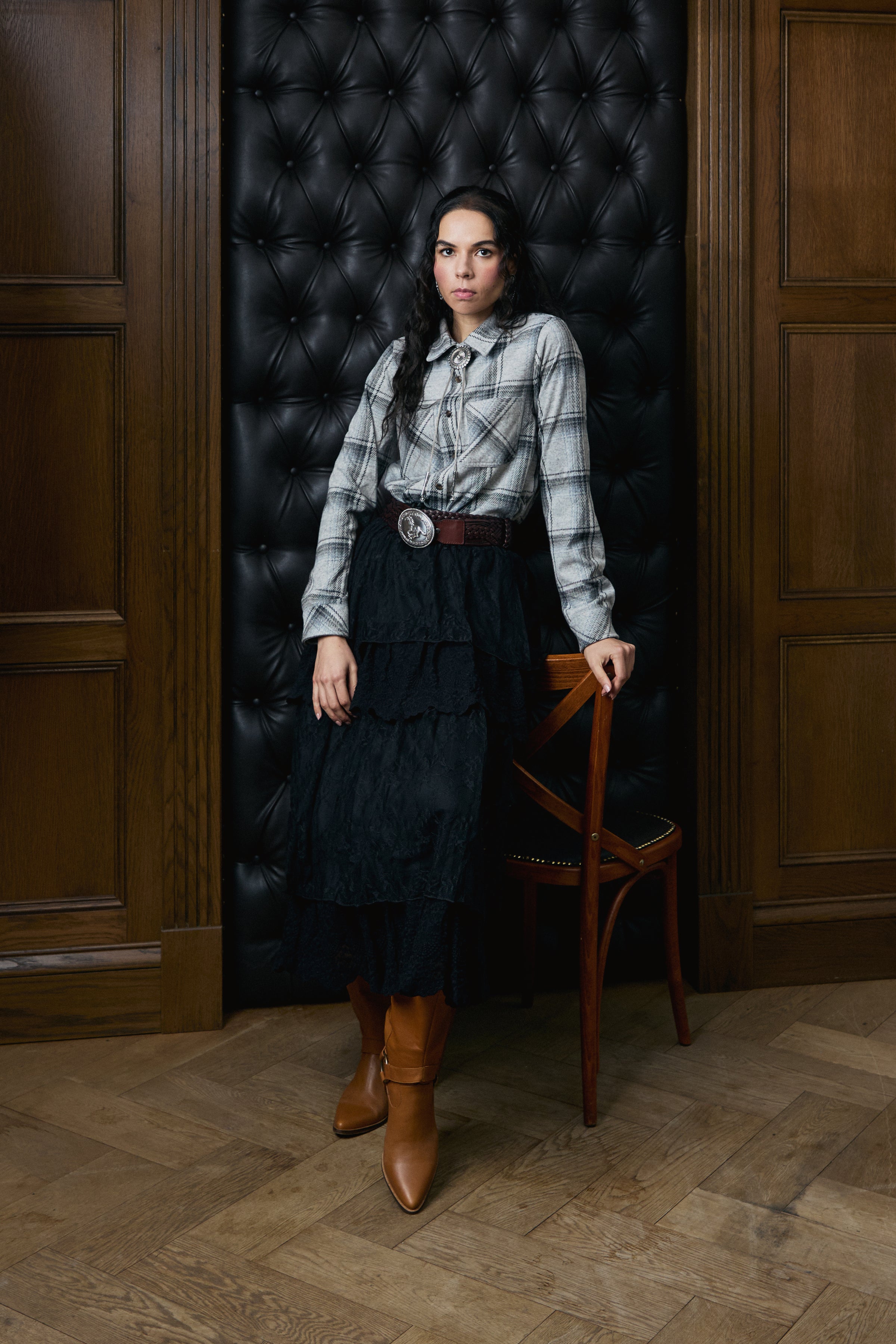 Made with lightweight, breathable fabric (and fully lined for comfort), this skirt is as easy to wear as it is elegant. The elastic waistband ensures a perfect fit. No fuss, just slip on and go. Whether you’re heading to a garden party, a romantic evening out, or dressing up your Western look with heels and a fitted blouse, this piece is made to steal the spotlight.