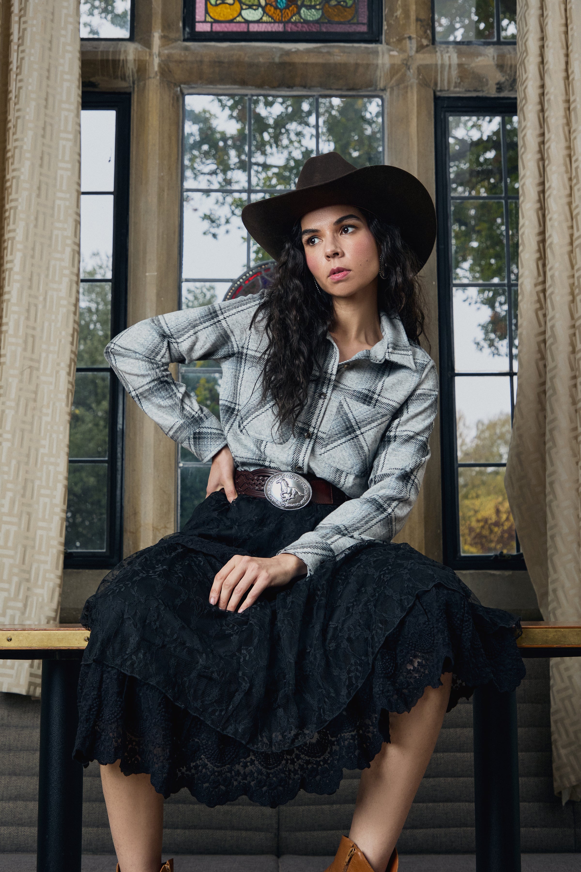 Bring a little romance to your Western wardrobe with this dreamy lace tiered maxi skirt. Layers of delicate lace cascade in flowing tiers, creating a flattering silhouette that moves beautifully with every step. A satin bow accent at the waist adds a touch of charm, while the scalloped hemline gives it that refined, feminine finish.