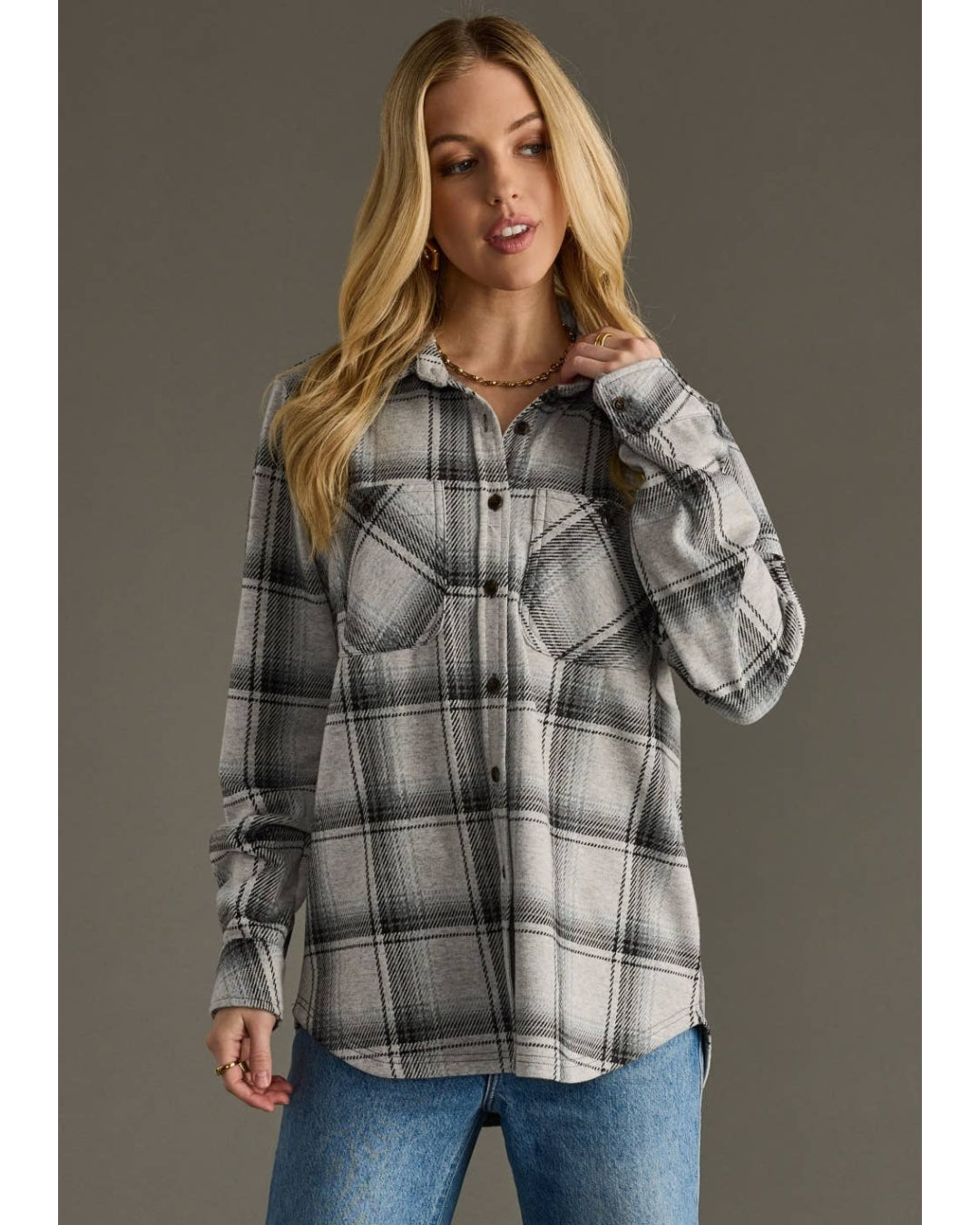 Wrap yourself in cosy Western charm with our Grey & Black Plaid Button Up Soft Shirt. This timeless plaid design combines shades of grey, black, and light blue for a versatile, laid-back look that feels just as good as it looks. Made from a super-soft blend of polyester, rayon, and spandex, it drapes beautifully and moves with you — perfect for those casual days that turn into nights out.